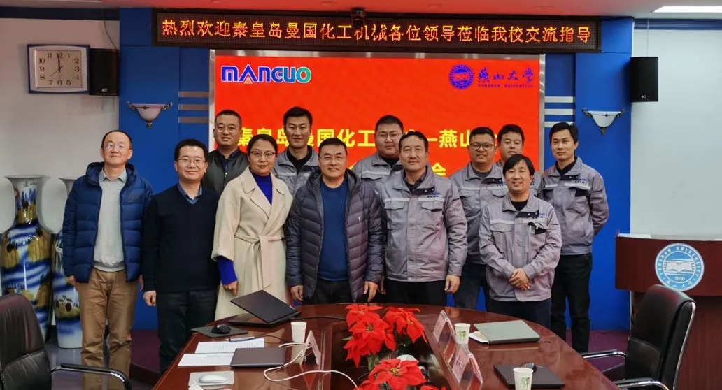 3月16日上午,秦皇島曼國(guó)化工機(jī)械有限公司(以下簡(jiǎn)稱(chēng)“曼國(guó)機(jī)械”)與燕山大學(xué)孔祥東教授團(tuán)隊(duì)在燕山大學(xué)東校區(qū)機(jī)械館301舉辦了校企合作交流會(huì)。曼國(guó)機(jī)械總經(jīng)理孫永常、常務(wù)副總翟中印、副總馬志國(guó)、副總黃斌、副總孟令儉、副總鄒博禹、總經(jīng)理助理程華偉一行7人參會(huì),燕山大學(xué)孔祥東教授、姚靜教授、艾超教授及部分師生代表參加了會(huì)議。